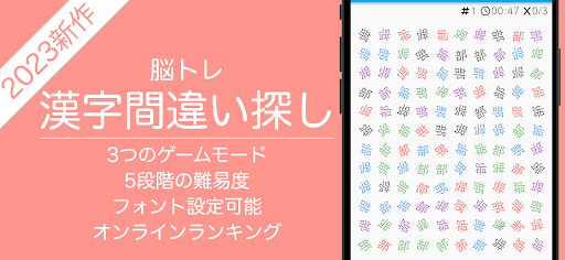 「漢字間違い探し」は、一見同じに見える漢字の中から、たった一つだけ違う漢字を見つけ出す脳トレパズルゲームです。シンプルながらも奥深いゲーム性で、あなたの集中力と注意力を徹底的に鍛え上げます。通学・通勤の暇つぶしや、ちょっとしたスキマ時間に脳を活性化させたい方にぴったりの無料パズルゲームです。